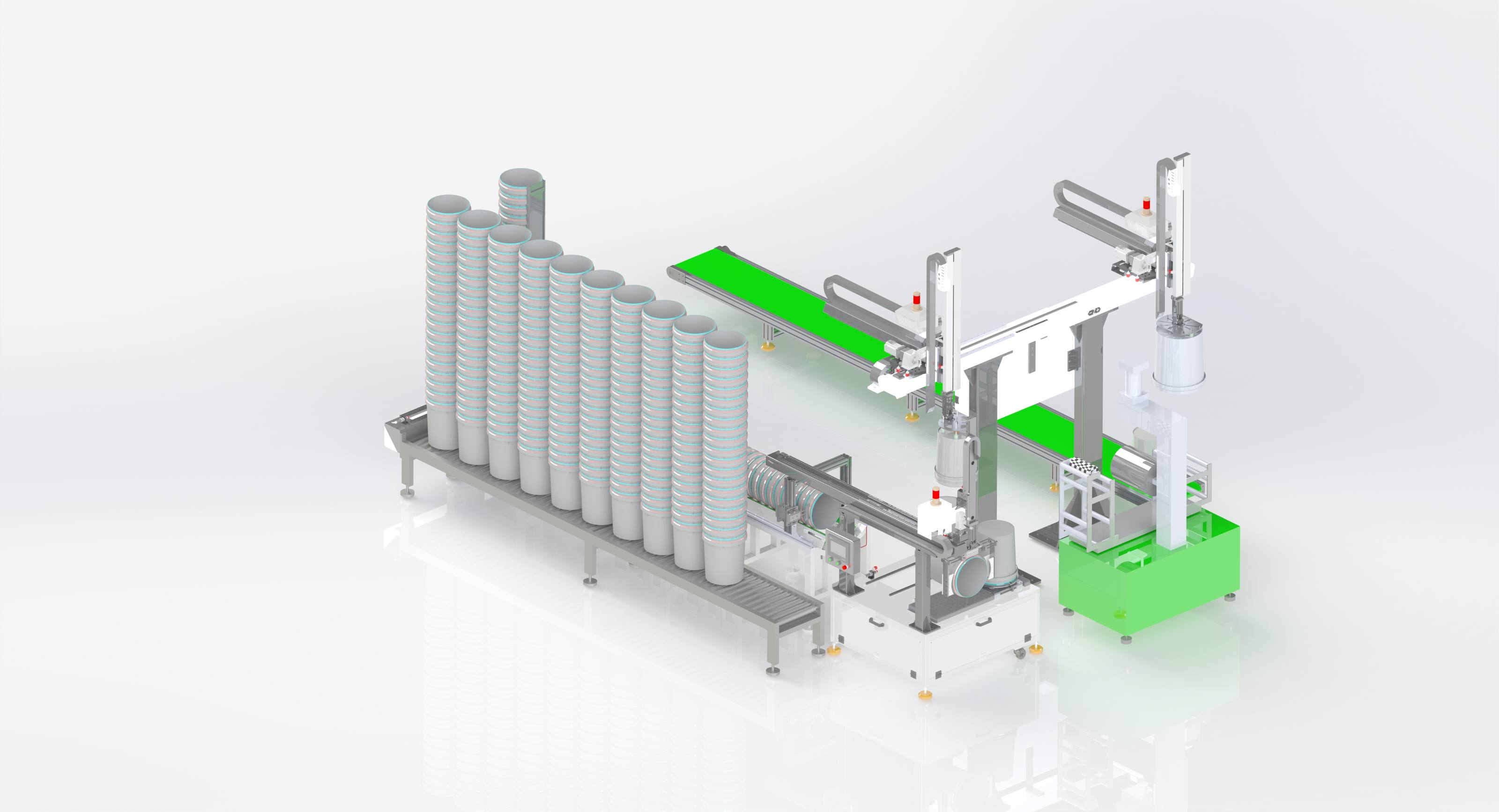 Automatic unpacking and sealing production line, High-tech robotic in-mold insert, Automatic folding spoon system, Coffee cup lids assemble system- how to assemble the cup lids automation
